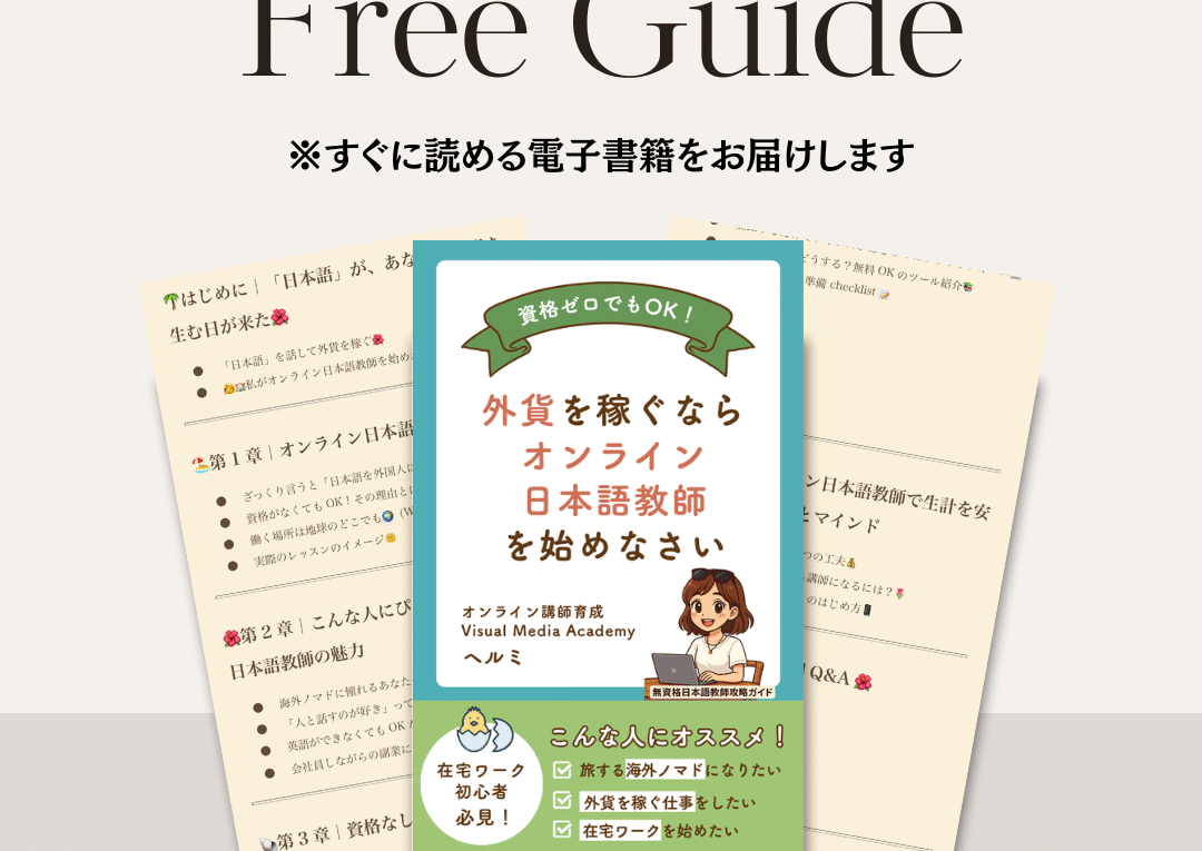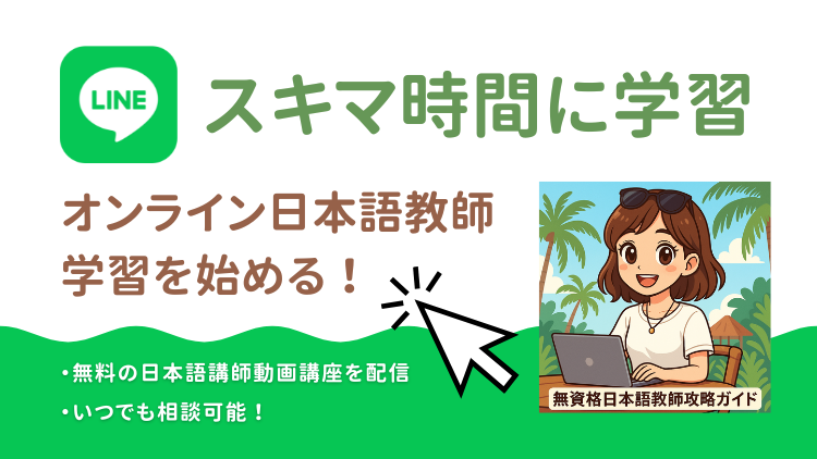 - 📌無料で当サイトや動画の内容をまとめたオンライン日本語教師講座が受けられる