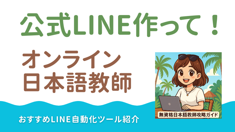 公式LINEに登録すると、オンライン日本語教師運営で上手くいく方法や、オンライン日本語教師で稼ぐための情報が【動画】で手に入ります